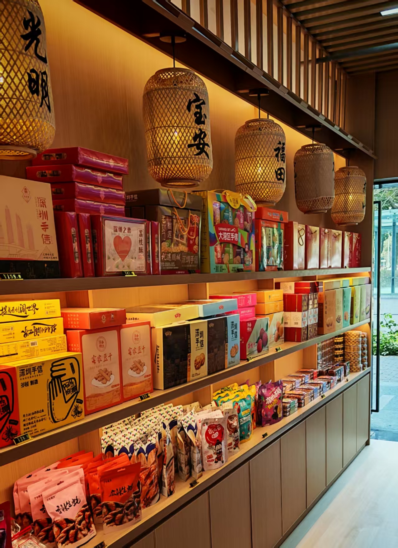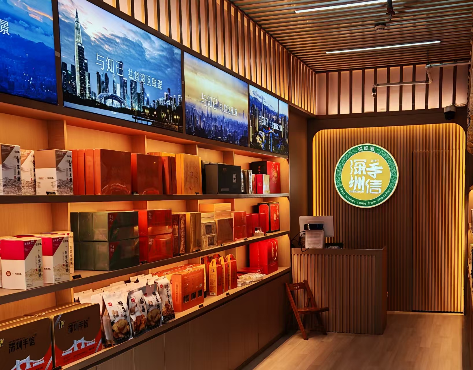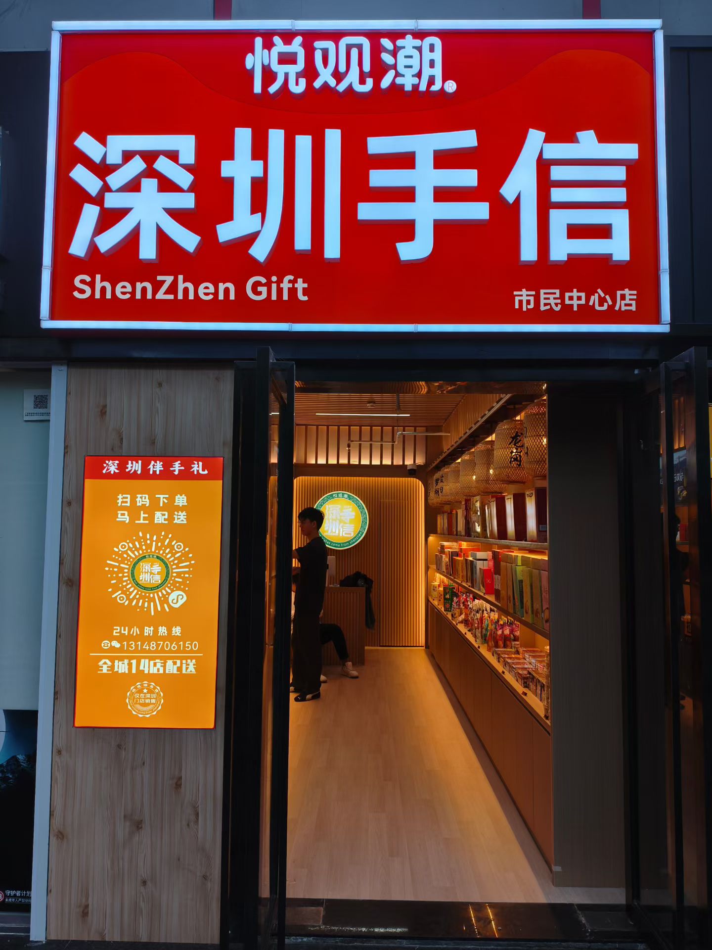 新门店延续了悦观潮一贯的现代简约与岭南文化元素相融合的设计风格。空间内巧妙运用暖色调灯光与木质展架,营造出温馨、雅致的购物氛围。产品陈列区规划清晰,涵盖了品牌经典的“深圳印象”系列文创、精选广式风味糕点、时尚茶礼、创新设计的生活用品以及携手本地艺术家的联名限定产品。每一件商品都承载着对深圳城市精神、历史变迁与创新活力的独特诠释,旨在让“深圳手信”超越物质本身,成为可携带、可分享的城市故事。